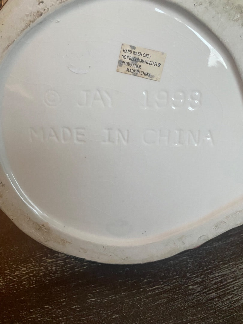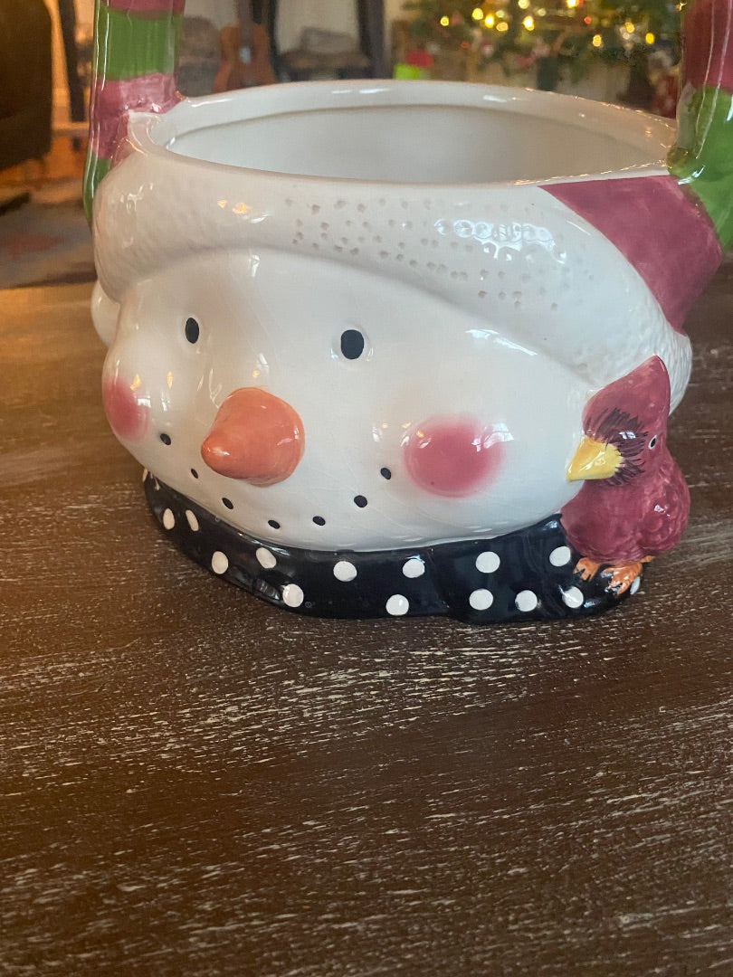 Snowman Basket Ceramic w\Handle-JAY 1998-ty