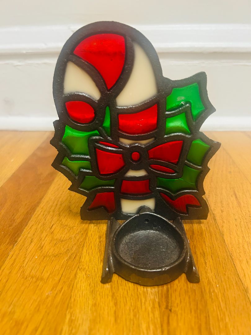 Stained Glass Holiday Candy Cane Candle Holder