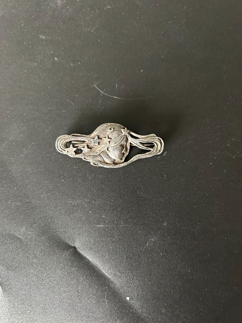 Sterling Silver Brooch. Art Nouveau Style Girl w/ Stars in Hair.