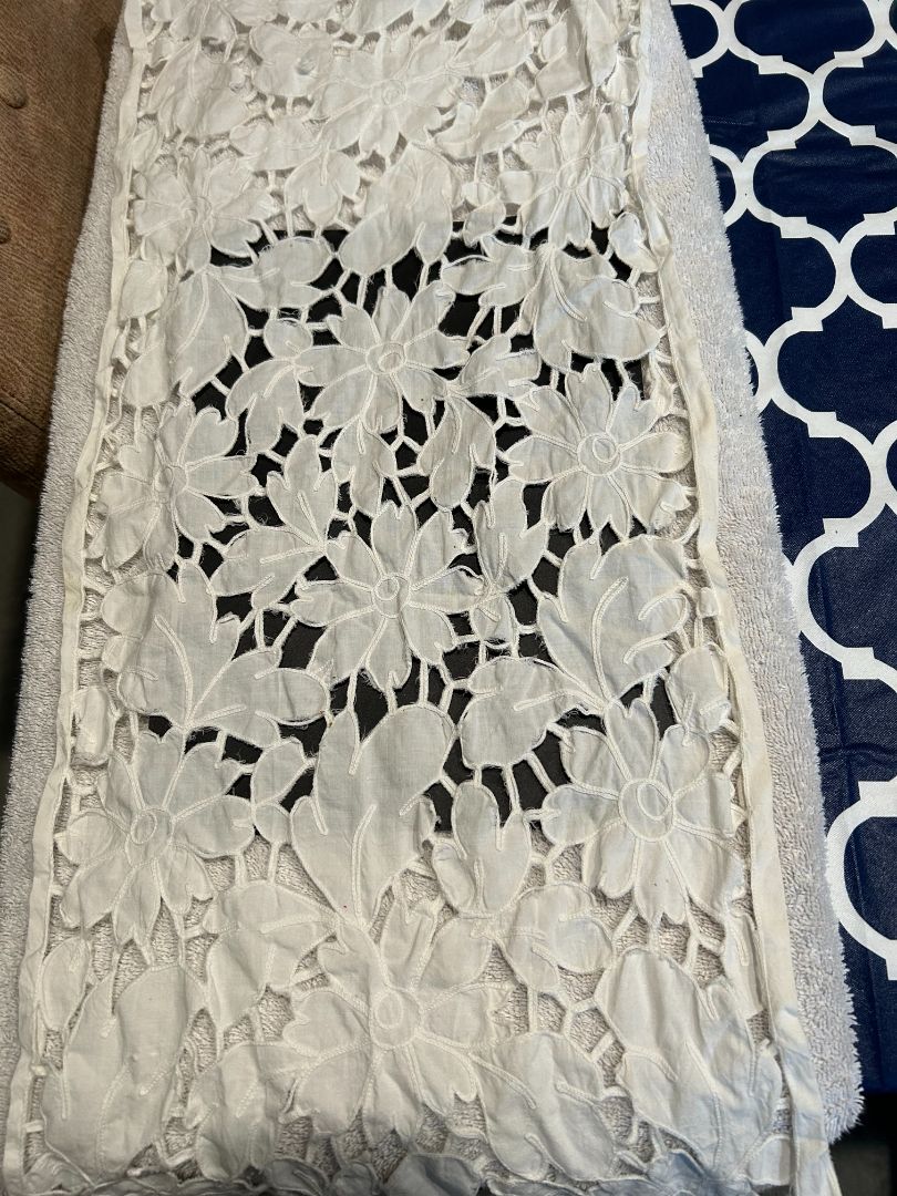 • Vintage Lace Cut-Out Table Runner. Ornate Floral Design.