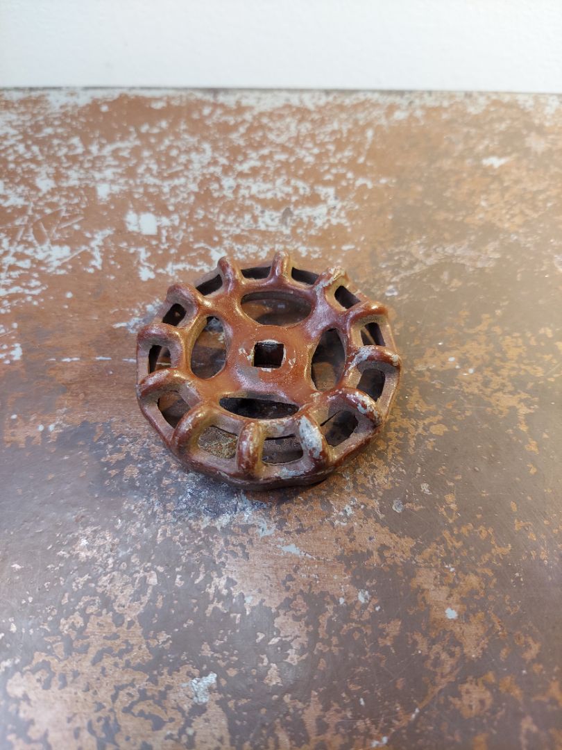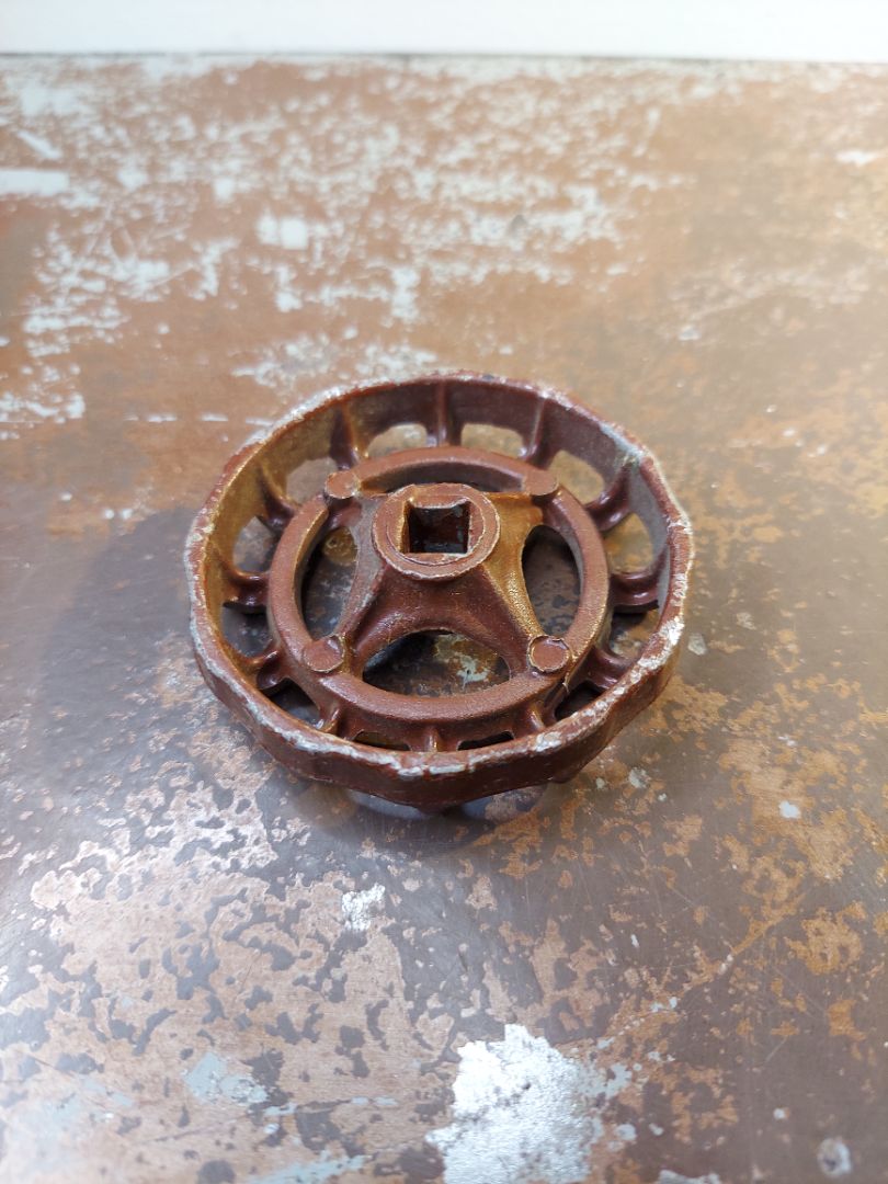 Vintage 2.5" metal grate wheel Square Broach spigot faucet valve handle