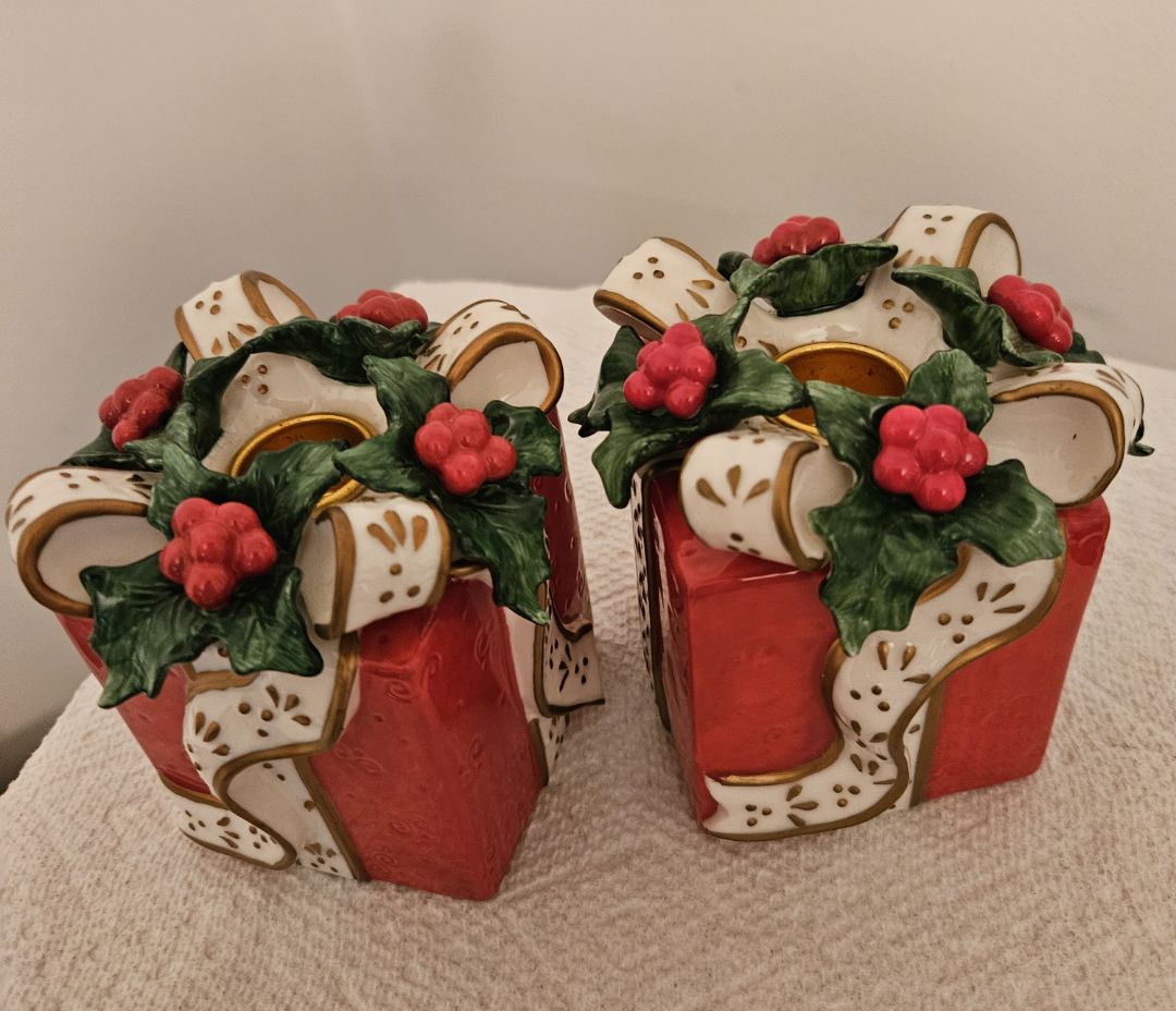 Vintage Avon candle holders that look like a Christmas gift box. SET OF 2