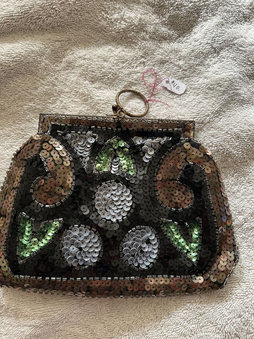 Vintage beaded, sequenced clutch purse. 1950's with kiss lock. 5.25"X7.5"