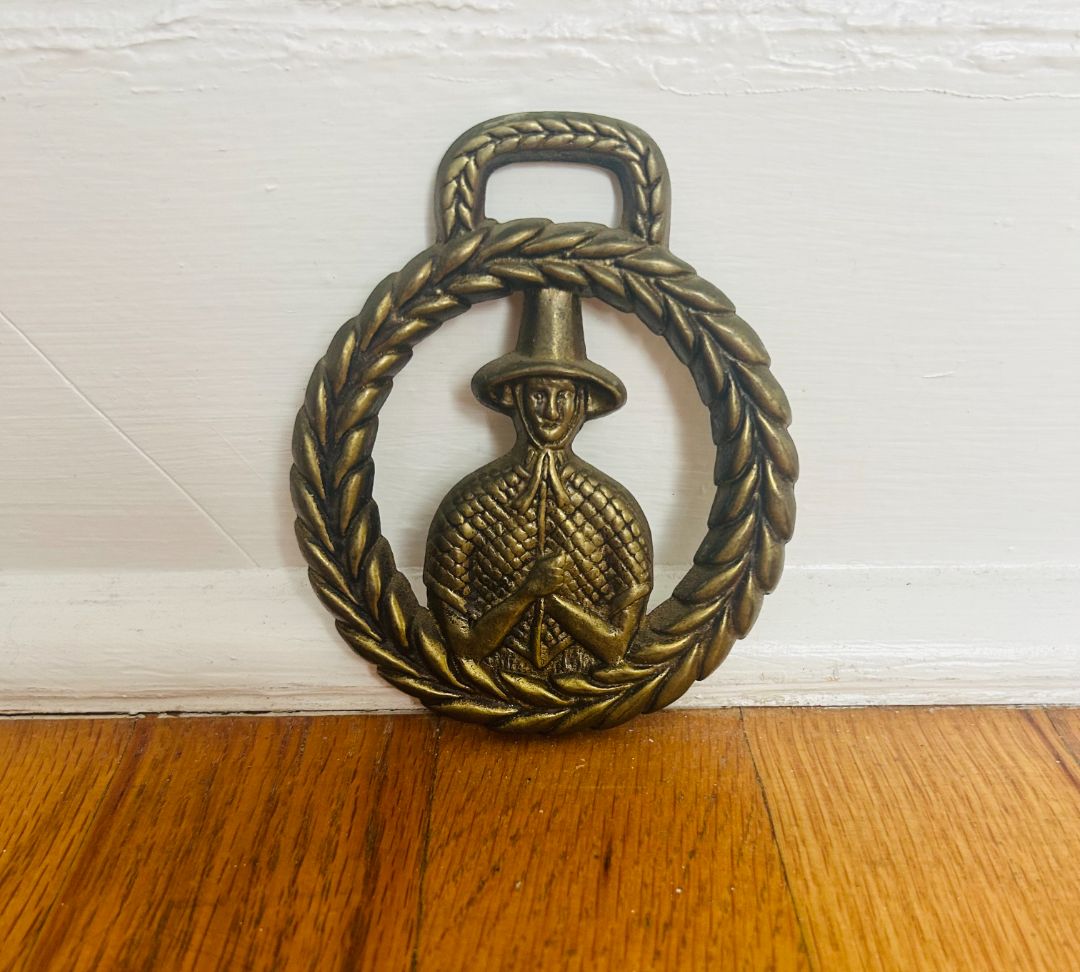 • Vintage Brass Medallion depicting "Jenny Jones" a popular Welsh fold song. Traditionally used as a decorative medallion on horse harnesses in England and Wales.