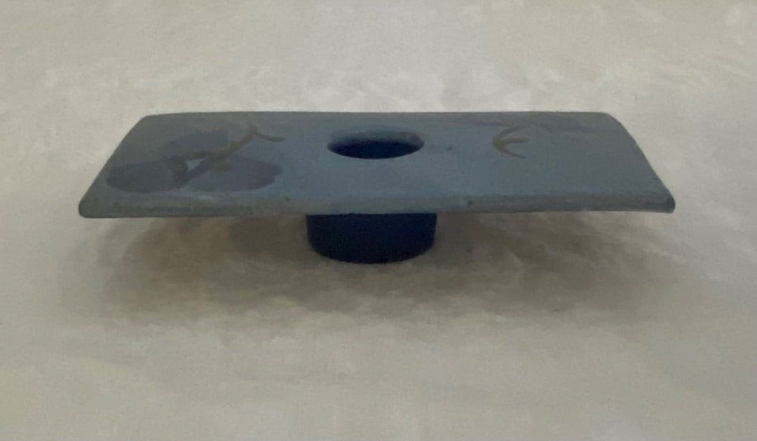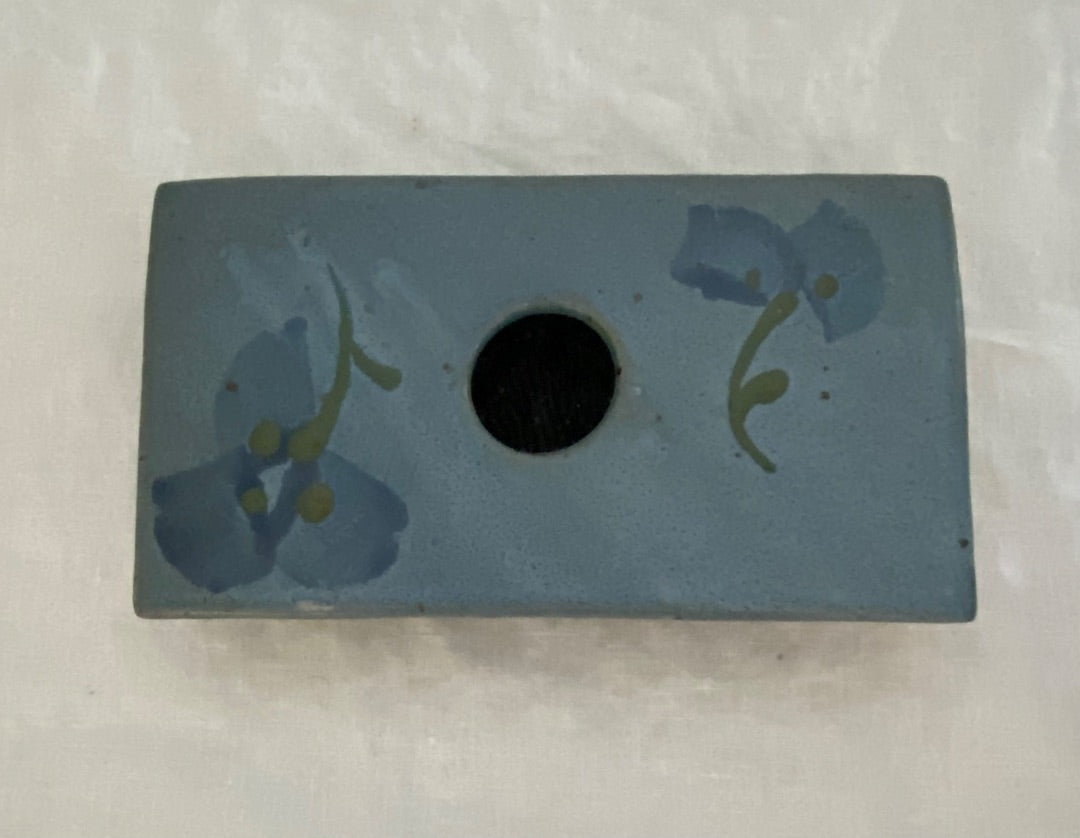Vintage blue ceramic rectangle with painted flowers floral frog