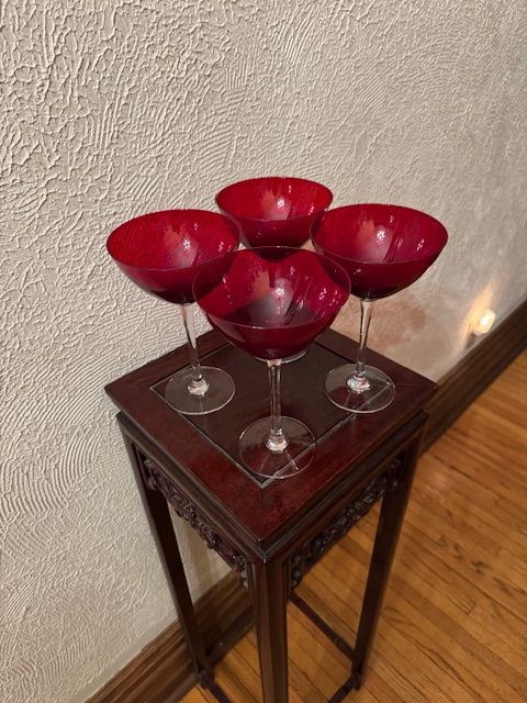 Vintage Ruby Red Crystal Martini Glasses with Clear Stem (SET OF 4)