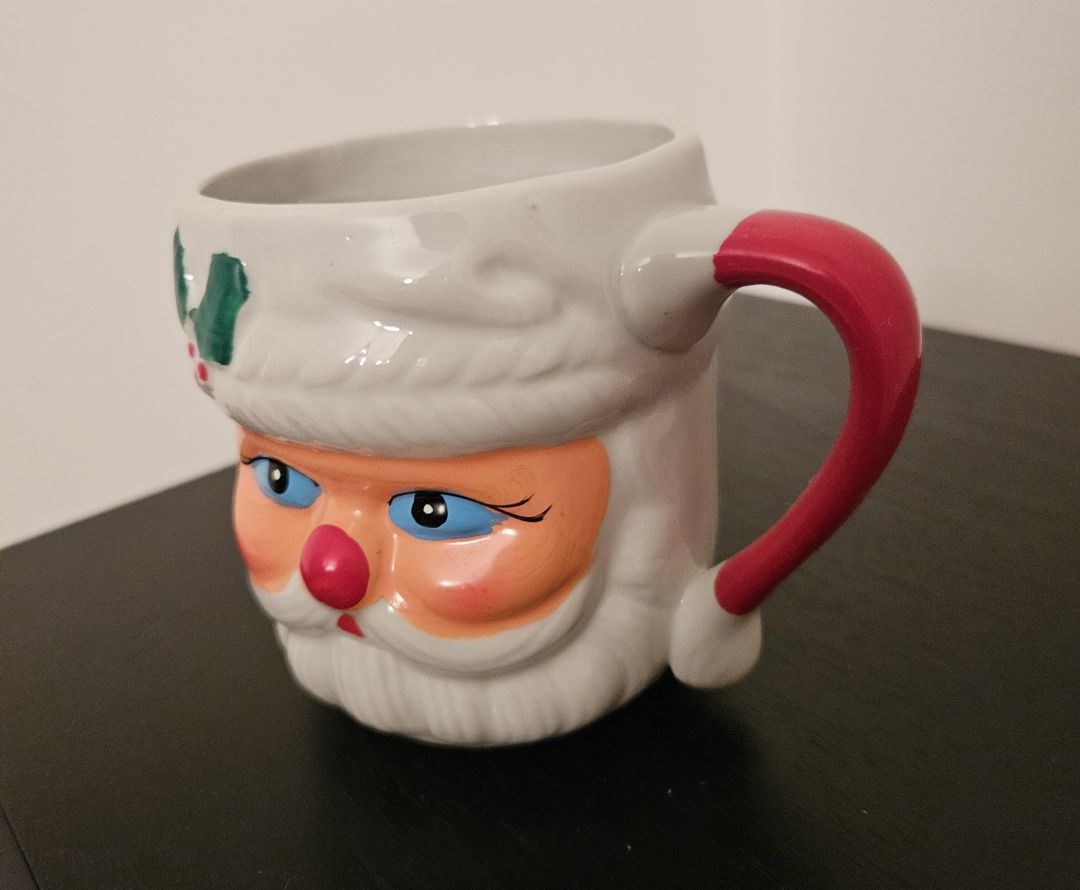 Vintage Santa mug with bright blue eyes and a very red nose!