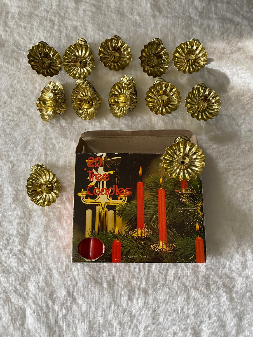 Vintage West German candle clips (set of 12) with candles (set of 20)
