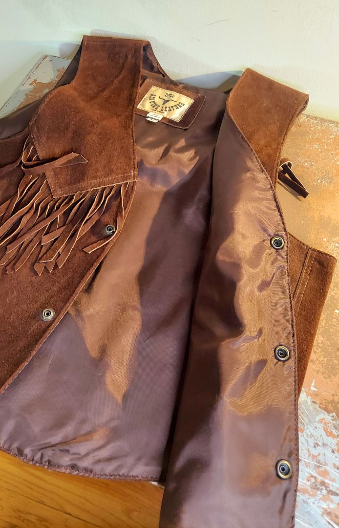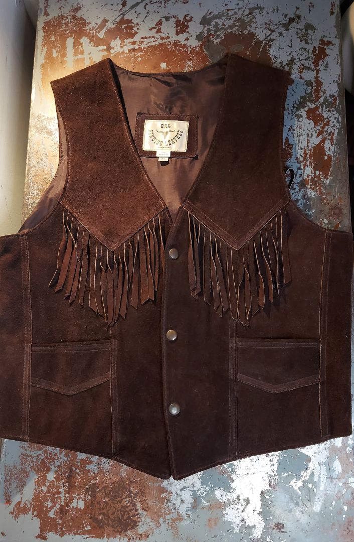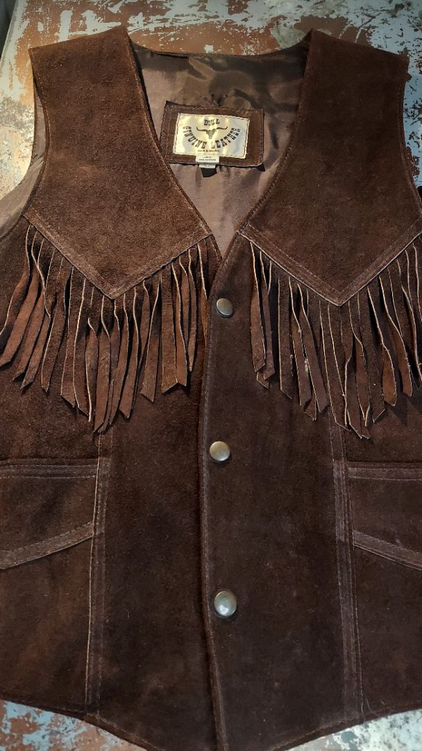 Vintage Western Brown Leather Snap Button Vest with tassles by BULL Genuine Leather Made in Mexico
