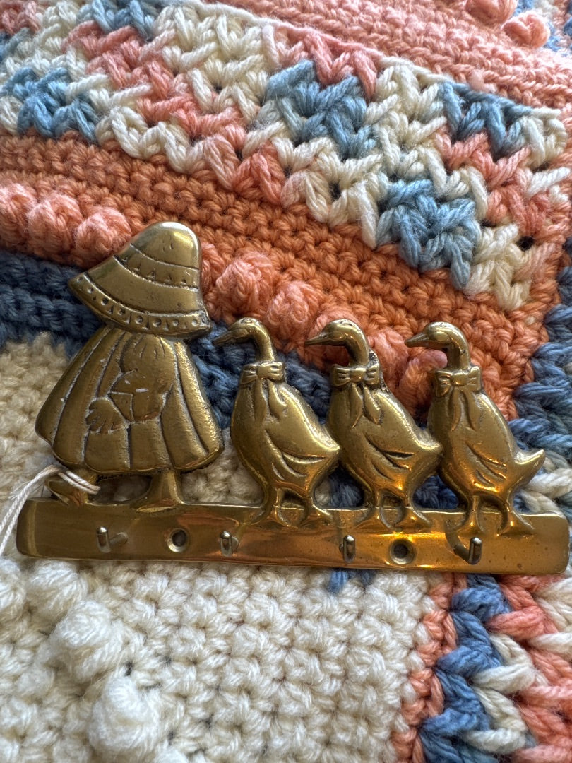 • Vintage, brass girl and geese wall key holder