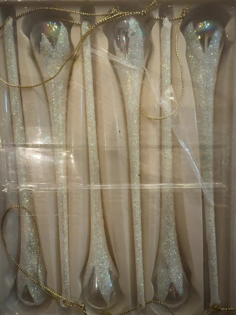 Vintage,glitter glass icicle teardrop ornaments ( set of 6)