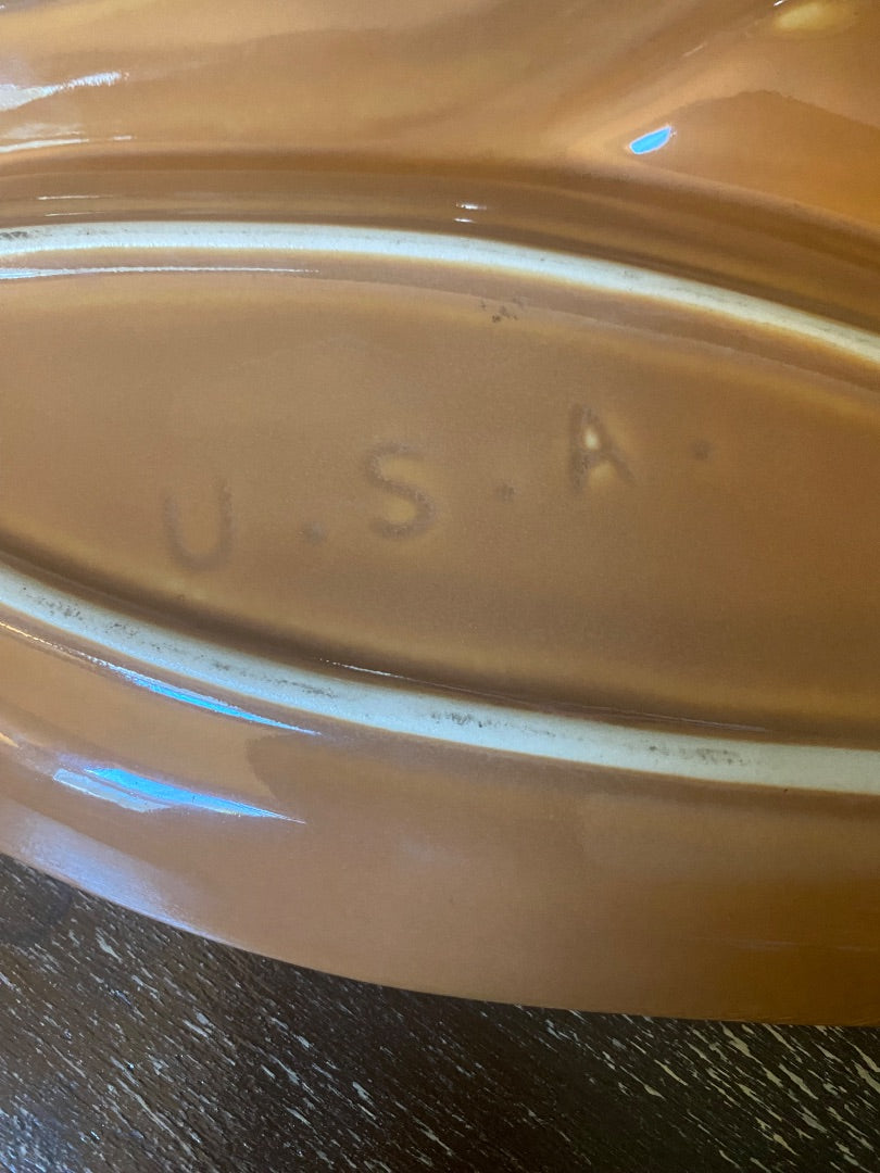 Vtg Ceramic Divided Leaf Serving Platter-ty
