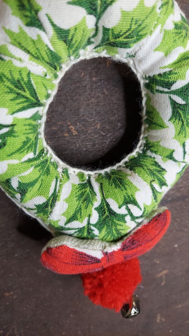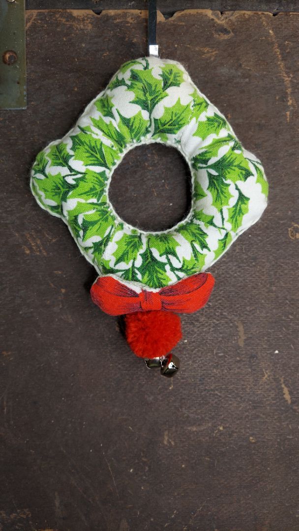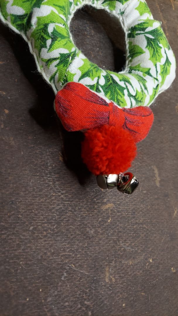 White - Midcentury Holly Fabric Plush Wreath, Pom & Jingle Bells wall decor / door handle jingle - hand stitched