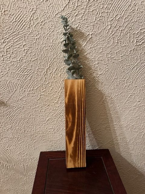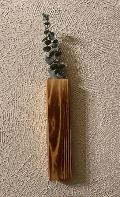 Wooden Bud Vase Wall Hanger with Artificial Eucalyptus Sprigs