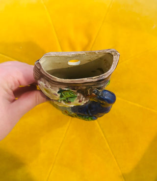 VINTAGE BRASS & ENAMEL BOWL Peacock & Flowers Made in India - Colorful 9.5"