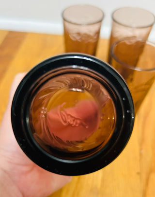 Vintage Amethyst Drinking Glass with Etched Leaf Design (set of 4)