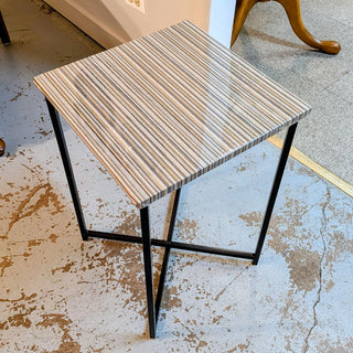 Striped Top Modern Parsons Table with Metal Base 14Wx14Dx22H