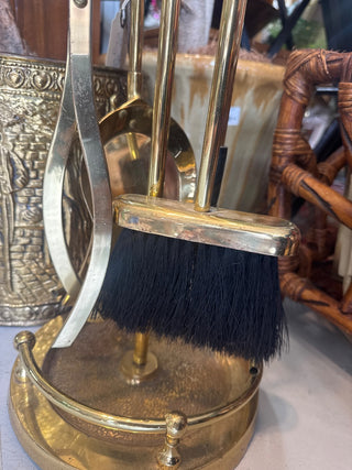 Vintage, Regency Style Polished, heavy solid brass fireplace set