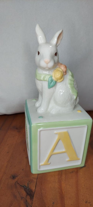 Belleek Bunny Baby Collection, porcelain Rabbit Alphabet Block Bank