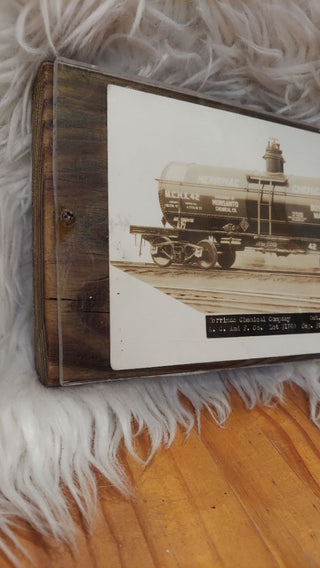 1937 railroad car photo "Monsanto - Morrimac Chemical Company" chemical train car. Custom Wood and Plexiglass Art Framed.