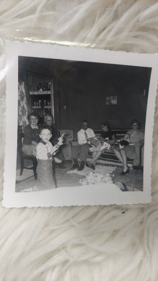 1950s Boy gets Smokey Cap Guns for Christmas! Family photography on Kodak Velox Paper