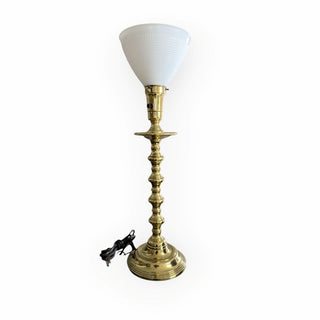 Brass Candlestick Table Lamp with White Milk Glass Shade, 8Wx8Dx26H