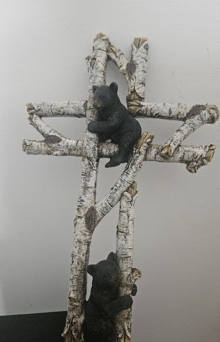 Black Bear Cubs Climbing a Birch Tree Wall Hanging