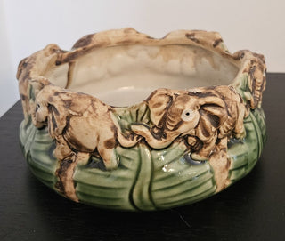 Vintage Fisherman's Fortune Hand Glazed Pottery Elephants Planter