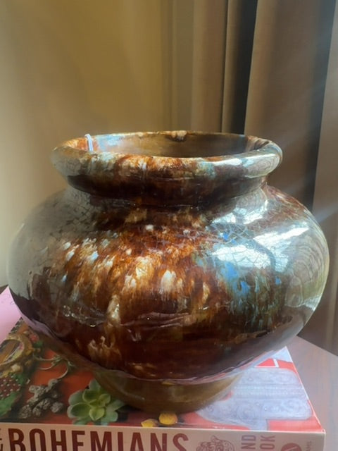 Vintage, 1940s brush McCoy drip glaze vase/planter. Not marked, information based on research, no tags