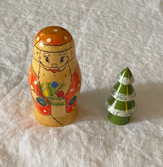 Vintage Santa with Doll in Sack Tin with Miniature Puzzle Inside