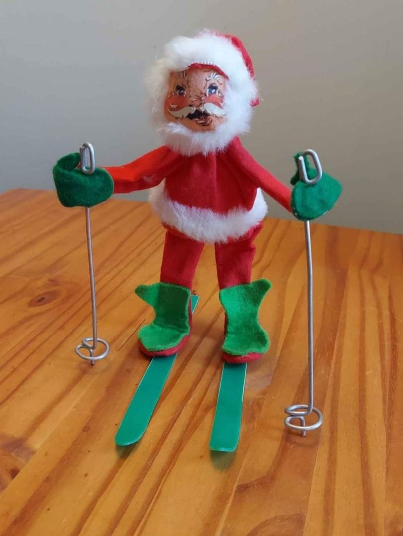1960s Mr. Santa With Skis And Poles By Annalee plush flexible figurines
