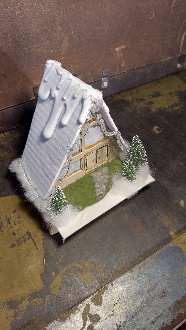 Gingerbread A-Frame Midcentury Christmas putz house, Christmas village (As-Is)