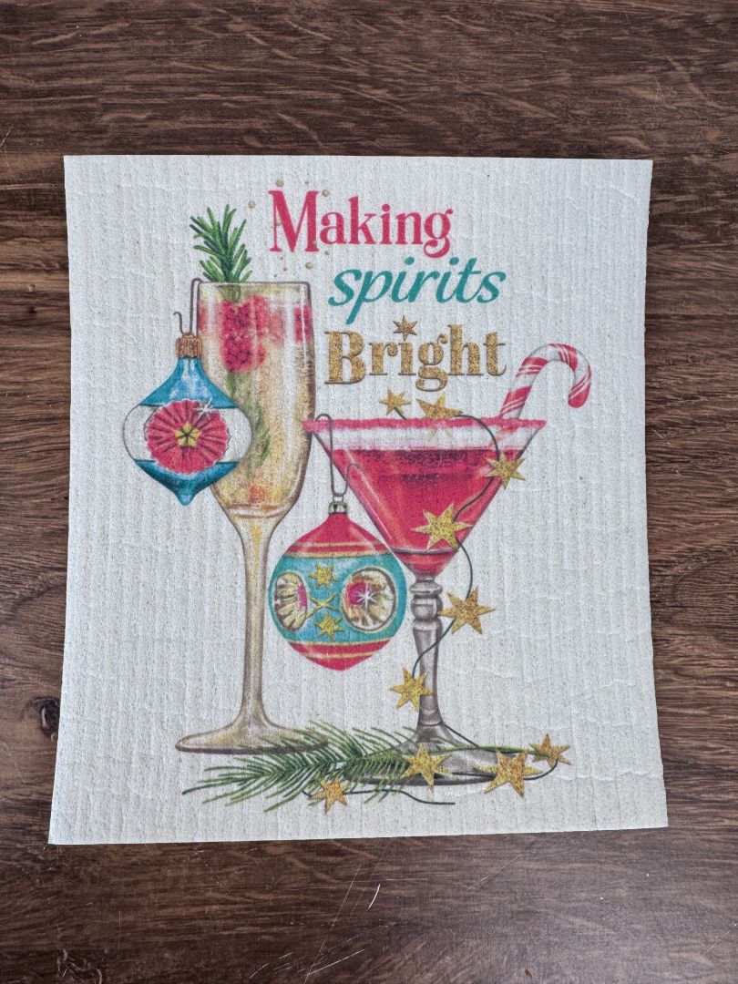 Add a dash of festive charm to your daily cleanup with this Making Spirits Bright sponge cloth featuring vintage ornaments and whimsical cocktail illustrations. It’s a fun, nostalgic touch for your kitchen and a seriously practical upgrade from traditional paper towels. Whether you’re wiping down the counter after mixing a round of drinks or tidying up the breakfast bar, this little cloth handles it all with ease.