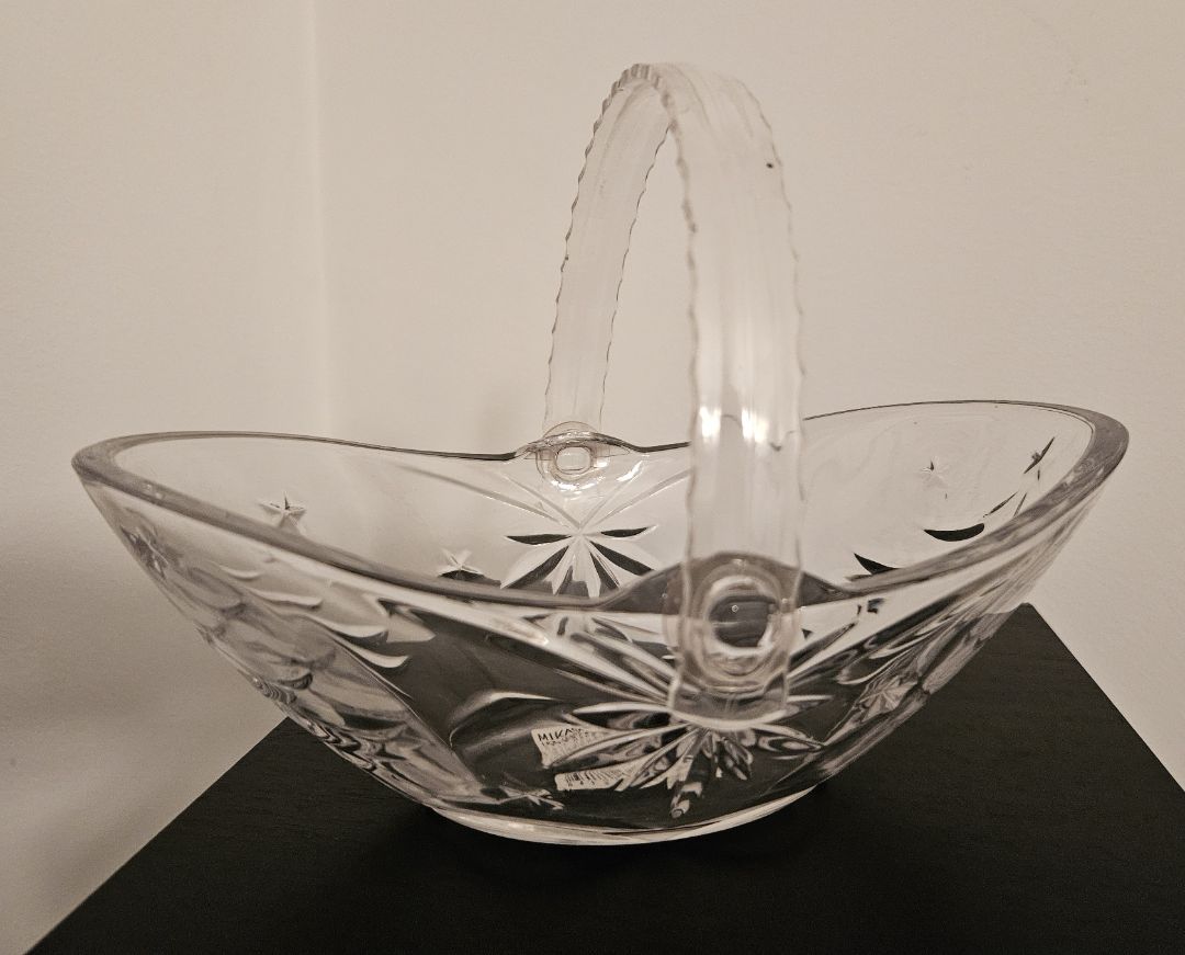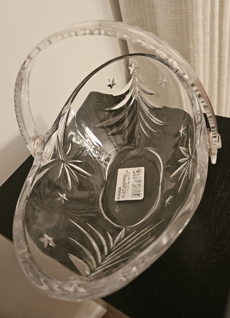 Mikasa Holiday Evergreen Crystal Basket with Handle.