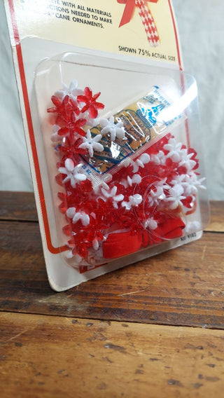 NOS - 1979 LeeWard "Candy Cane" - Christmas ornament making kit makes 3 by Fibre-Craft Beaded Ornament Kit #9182 - has original price tag, that is not its price. (As-Is)