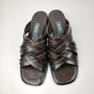 Bally Womens 10 Brown Leather Slip On Block Heel Sandal Slides