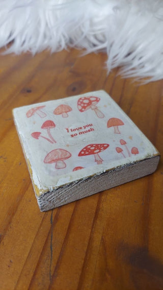 I love you so mush- Valentines Day Wood Block, Artisan Print On Wood Block