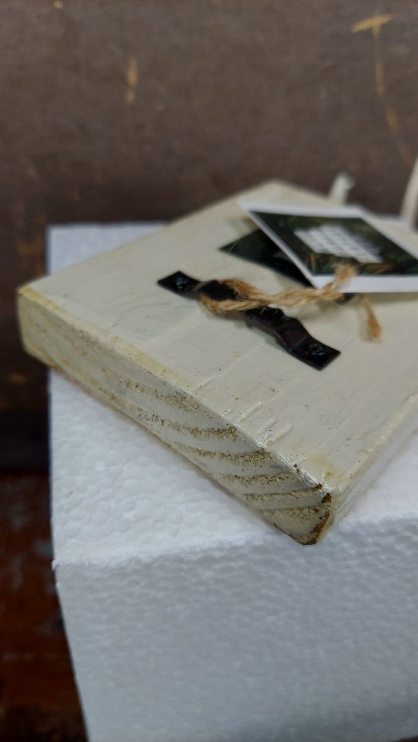 Custom Artisan Crafted Print On Wood Piece with wall mount bracket on back.