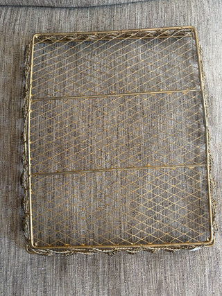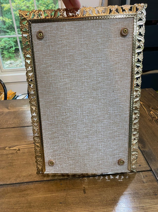 Vtg Gold Tone Mirror Vanity Tray Filigree Metal Regency Large 11"x16"