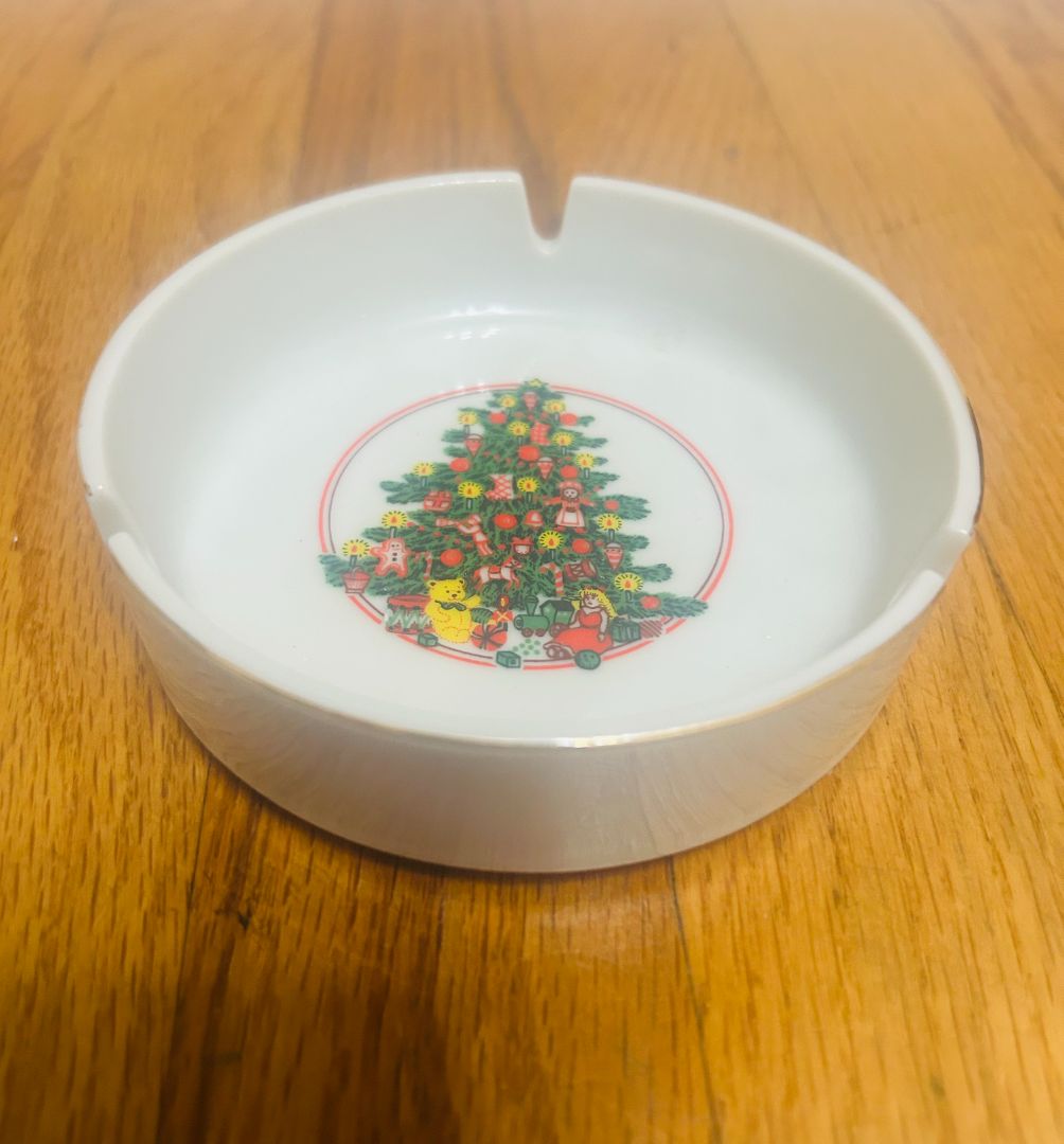 Vintage Christmas Ashtray featuring Christmas tree.