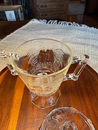 Jeanette Glass Baltimore Pear Pressed Glass Footed Sugar Bowl w/Lid
