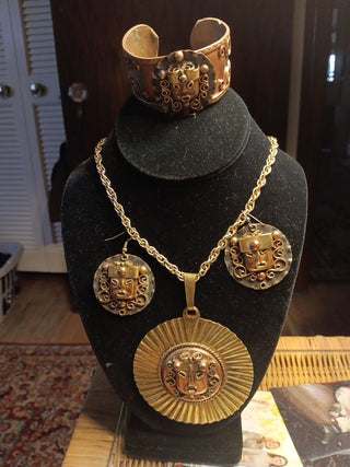 Vintage Copper & Brass Aztec Set (Necklace, Bracelet, & Earrings)