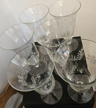 Danube Crystal Wine Glasses with Etched Flowers & Leaves SET OF 6