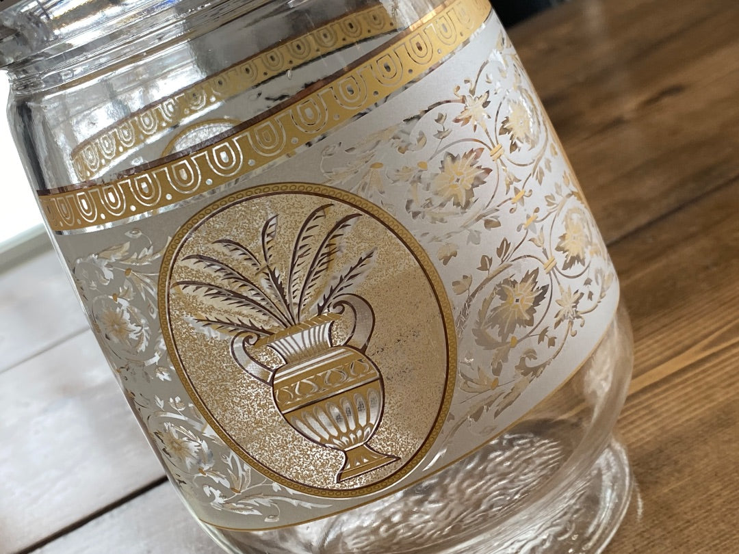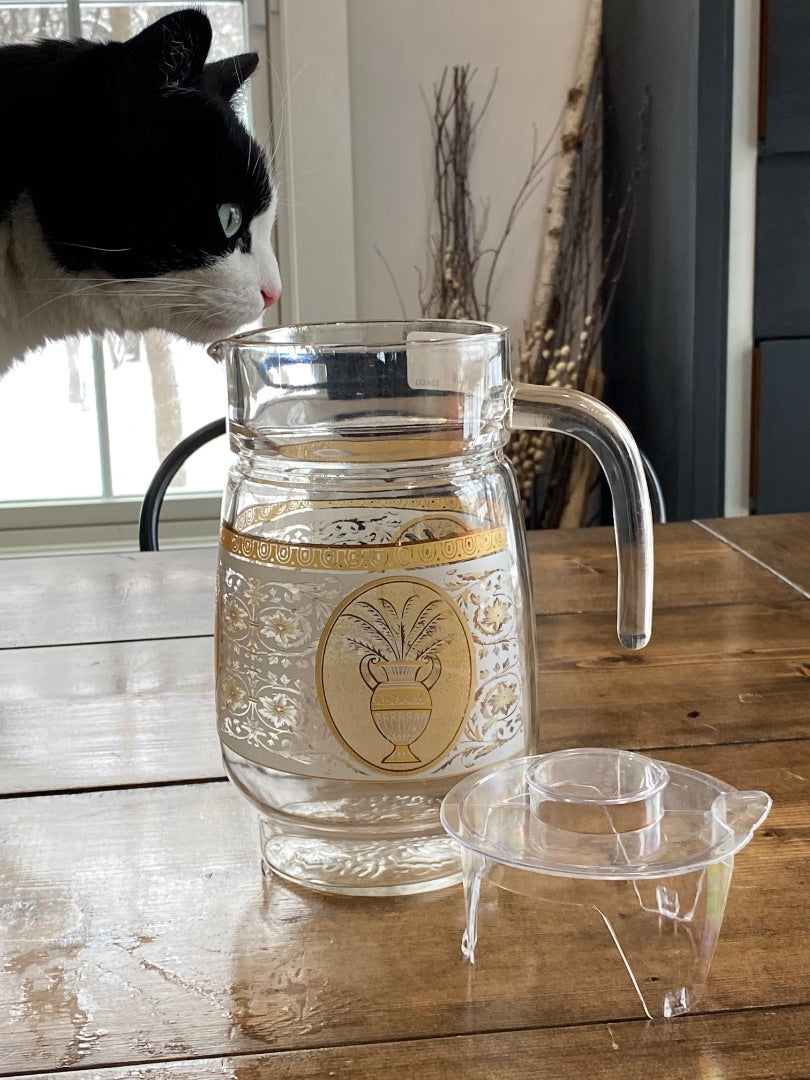 8.5" Vintage Glass & Gold Pitcher w/Lid