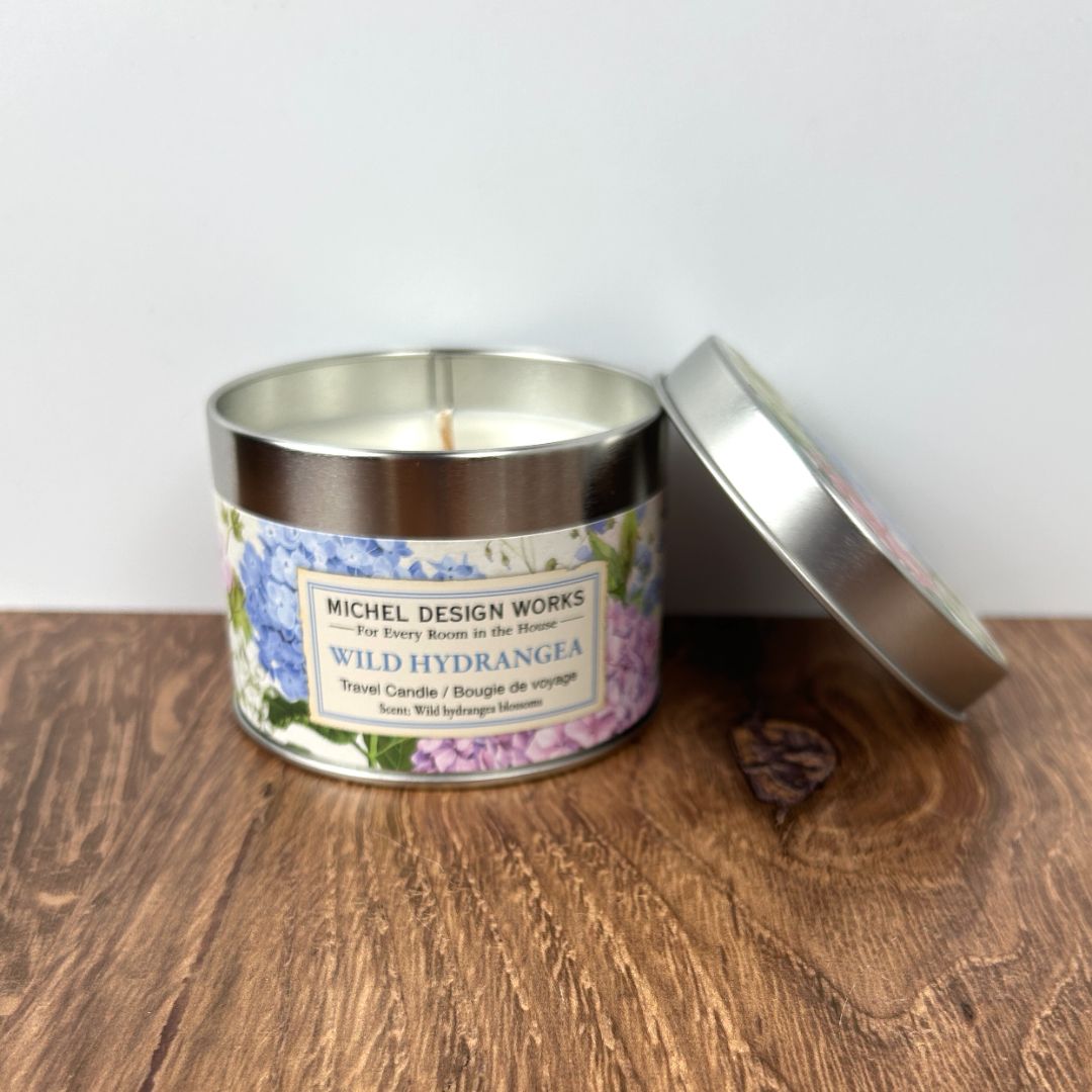 Bring the lush beauty of blooming hydrangeas into your home with this Wild Hydrangea Candle from Michel Design Works. Encased in a decorative travel sized container with a matching lid, this candle combines elegance and fragrance for an experience that feels as fresh as a garden in full bloom.