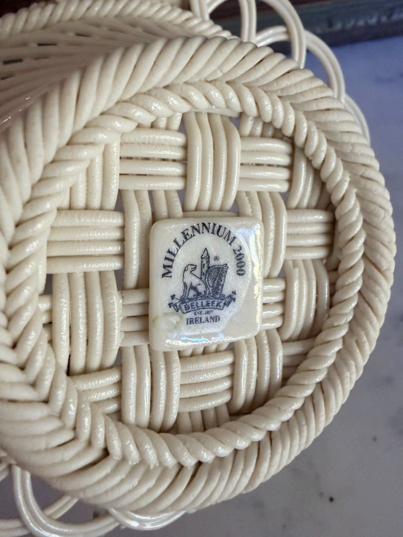Belleek Poinsettia & Holly Woven Porcelain Basket