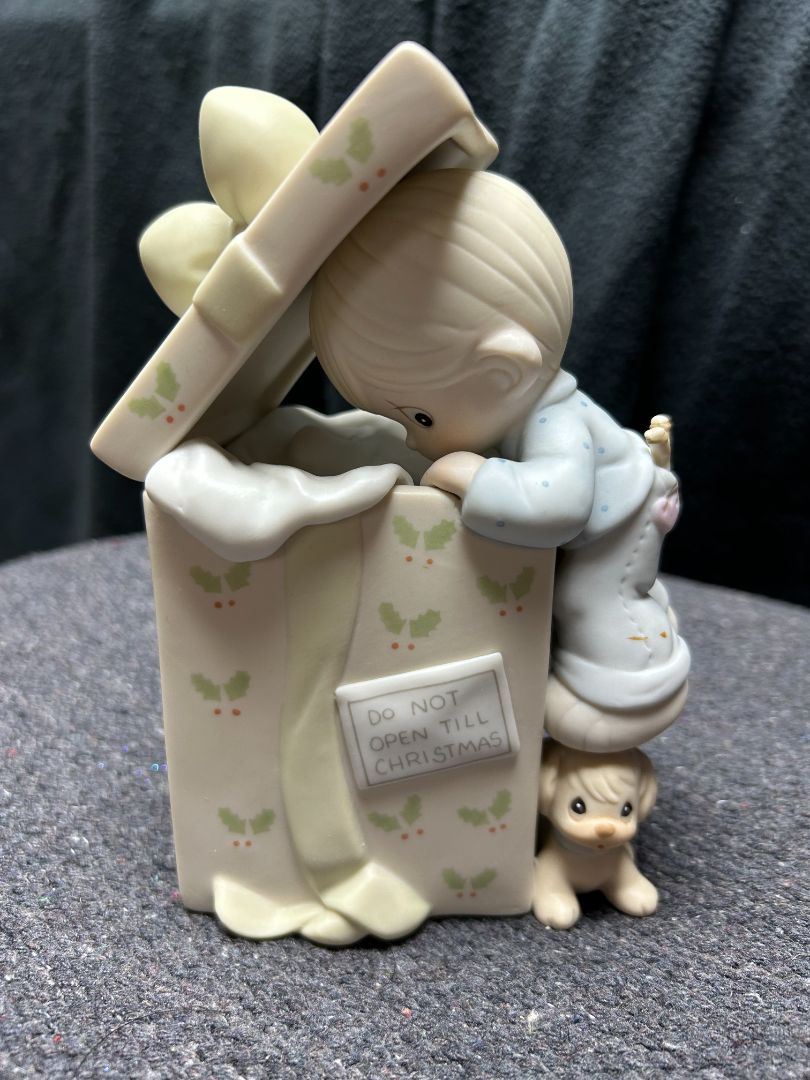Gently used Christmas present musical figurine. Named: Do Not Open Till Christmas and the tune it plays is: Toyland