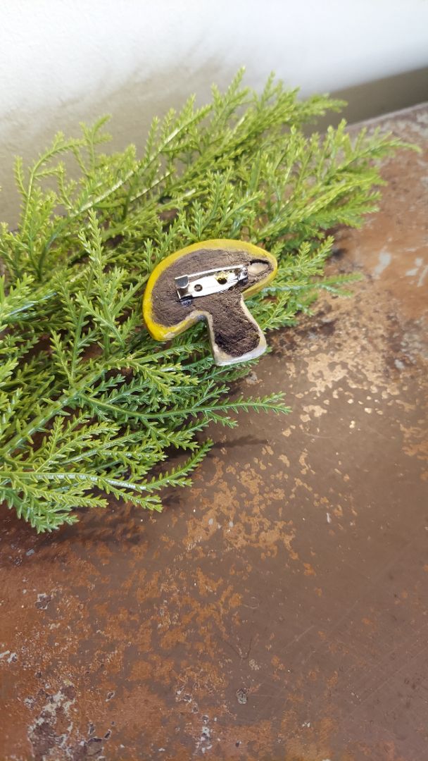 Mustard Mushroom Pin Brooch - Artist Original - Rustic Painted Plaster
