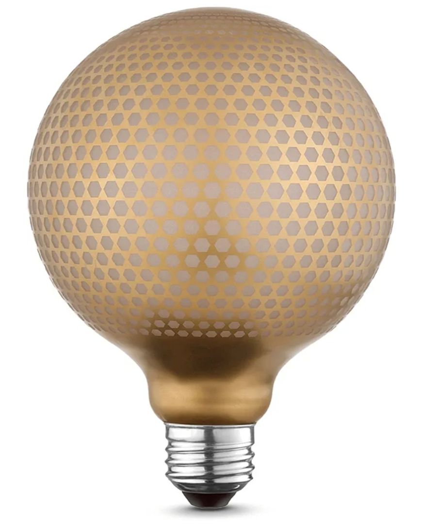 Globe Electric 35042 Moderna Luxury Oversized Frosted LED Filament Light Bulb, 4 Watts (40 Watt Equivalent), Copper Hexagon Design, G40 Shape, E26 Base, 2400 Kelvin, 160 Lumens, 15 000 Hour Lifespan