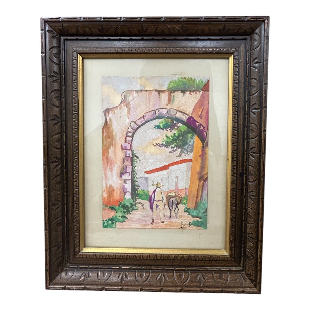 Original Gouache on Paper, Signed, Man In Sombrero